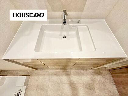 広々洗面台で手や顔が洗いやすい◎フラットで掃除もラクラク♪