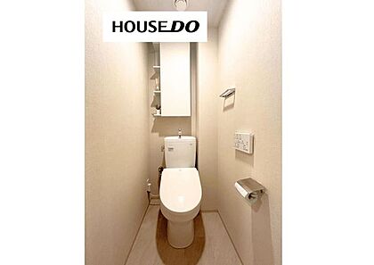 上品なデザインのトイレ♪収納棚もあり生活感を隠せます!