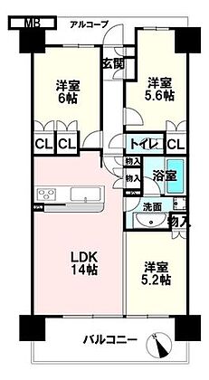 3人家族でゆったりお過ごしいただける間取りです♪収納豊富で荷物の多いご家庭でも部屋をすっきり見せられます!