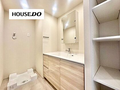洗面にはタオルなど収納いただけるスペースがあります♪追加で収納を買わなくてもOK!