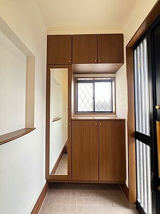 玄関には家族みんなの靴を収納できるシューズボックス付き!飾り棚としても演出できて、季節のインテリアやご家族の写真を飾るのも素敵ですね☆