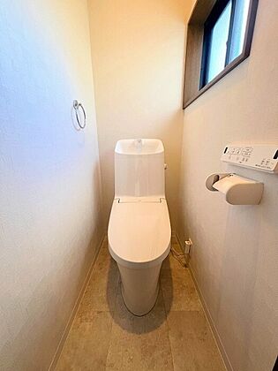 清潔な空間が印象的なトイレは1階・2階ともに温水洗浄便座です。オールシーズン関係なく暖かい便座で快適に過ごせます♪