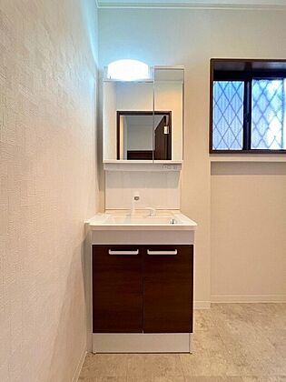 朝の身支度も楽々の三面化粧台は鏡裏にも収納があり、小物などをしまえてすっきりとした状態を保てます。