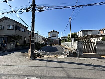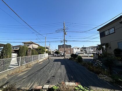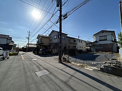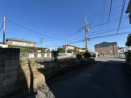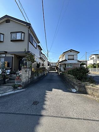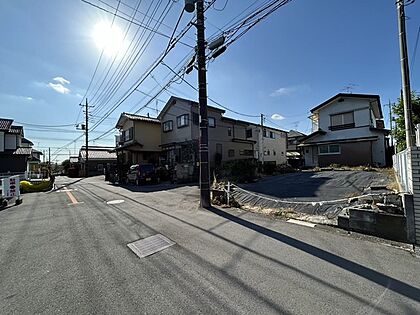 幅員の狭い道ですが、車通りの少ない住宅街に立地してます。