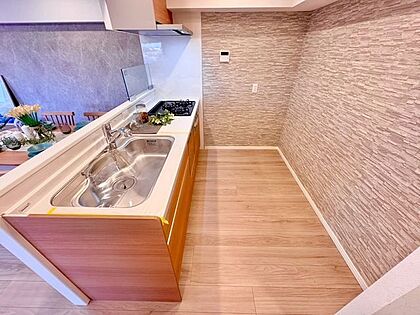 3口コンロ付のシステムキッチン!お料理の効率も上がります。