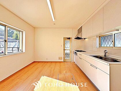 明るい色のフローリングと白いクロスが光を反射して更なる採光を生みます。