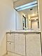 大型の鏡を備えた洗面化粧台。朝の忙しい時間帯にも重宝しますね