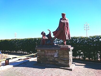 【貫一お宮之像】ジャカランダ遊歩道にある「貫一お宮之像」。