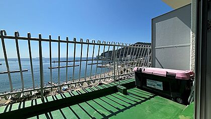 【メーンルーム】昼間は海と空しか目に入らない絵画のような景色が広がります。最上階なので車の音も気になりません。