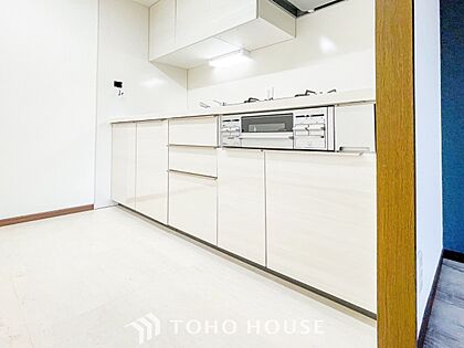 お手入れのしやすいすっきりしたシステムキッチンを採用しました。