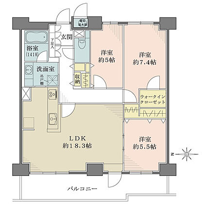 バルコニーに面したLDKは約18.3帖。2025年11月リフォーム実施につき、快適に過ごせます。【LDK約18.3帖】