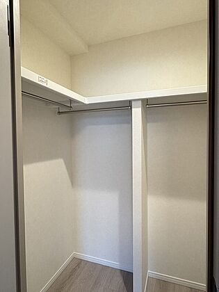 枕棚とハンガーパイプが備わっています。衣類の他に、スーツケースやゴルフバックなどの収納が可能です。【ウォークインクローゼット】