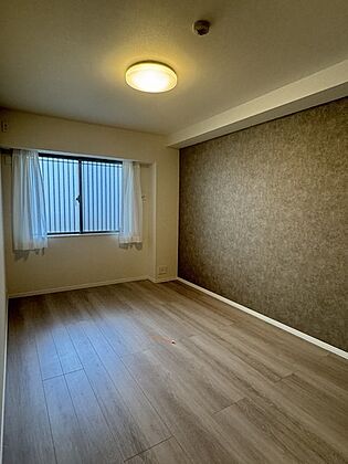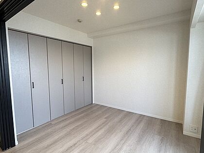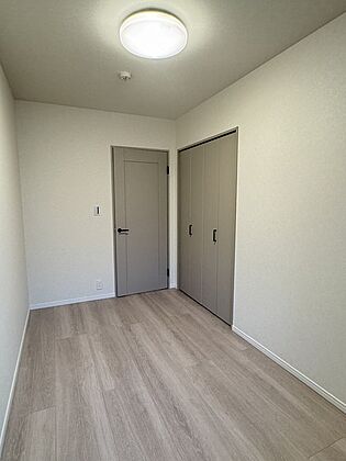 飽きのこないシンプルな内装のため、お好みのインテリアを楽しめそうです。収納が備え付けられています。【洋室約5帖】