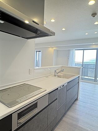 キッチンは吊戸棚がないため視界を遮るものがなく、LDを見渡せます。ビルトイン食器洗乾燥機搭載です。【キッチン】
