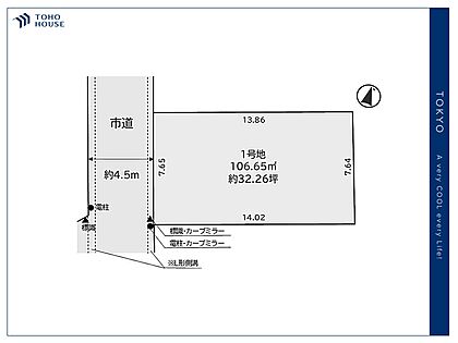 | 土地面積/坪(坪単価) | 106.65m2(登記簿)/32.32坪(170.10万円) | 代表的な接道 | 一方 公道 南西 4.5m ※詳細は備考欄をご確認ください |