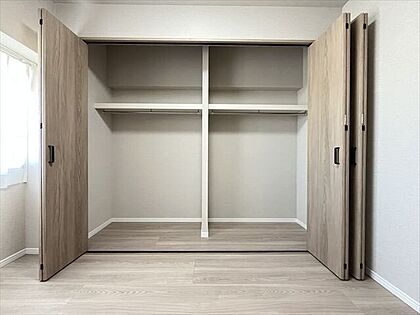 4.1帖洋室:中央に仕切りがあるクローゼットです。3枚の扉があり、中央の扉は両サイドに移動ができます!物の出し入れがスムーズに◎(2025年11月20日撮影)