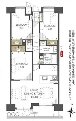 専有面積:75.86平米 バルコニー面積:8.97平米 間取り:3LDK!