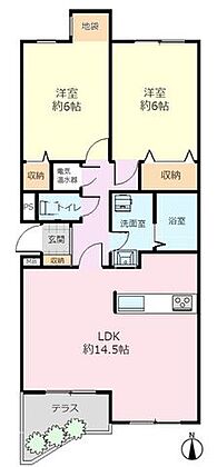 ■専有面積:68.08平米の2LDK、南側テラス付き