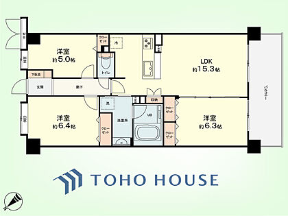 3LDK 専有面積70.20平米、バルコニー面積10.80平米
