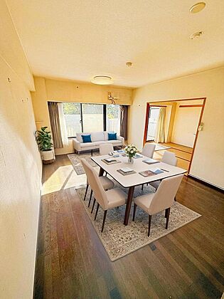 昼間は太陽光が室内にたっぷりと射し込みます。ご家族の会話がはずむ開放的なLDKです