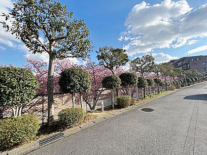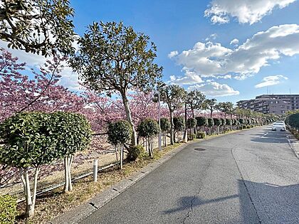 リビング前には緑豊かな景色が広がっています。四季折々の木々に癒されます