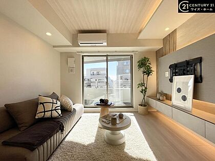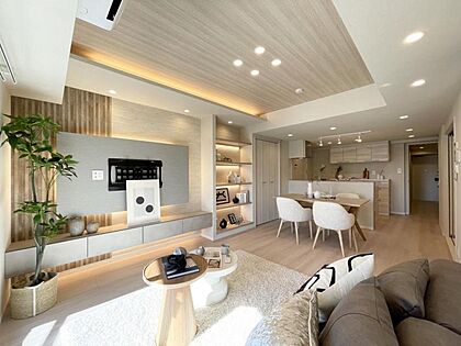 【LDK】 リビングは明るくナチュラルな色合いでまとめられたモダンな空間
