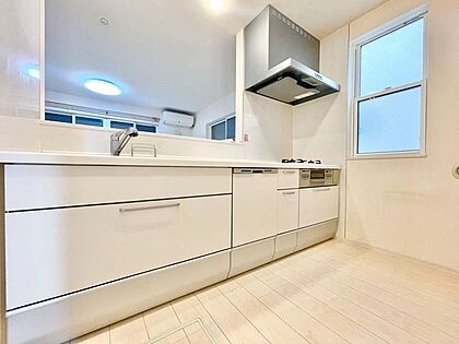 キッチンはリビングダイニングを見渡せる対面式キッチン。家事が捗るように動線を意識した間取りです。