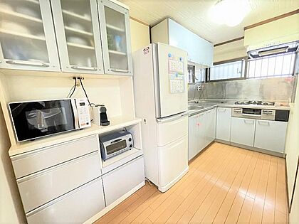 動線が短く、手早く作業できるL型キッチン!収納力豊富なカップボードもございます!