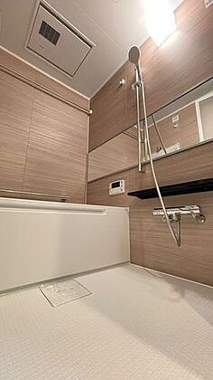 •  ナチュラルな木目柄のアクセントパネルをあしらったバスルームは、視覚的にも温かさを感じ、よりくつろげるお風呂時間をもたらしてくれます