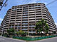 緑の植栽が映えるベージュのタイルに包まれた外観(ウェストウィング)
