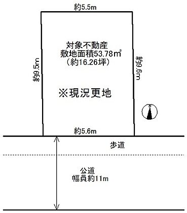 | 土地面積/坪(坪単価) | 53.78m2(登記簿)/16.3坪(174.80万円) | 接道 | − |