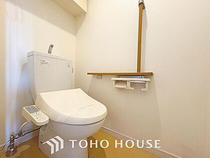「温水洗浄便座付きトイレ」トイレは快適な温水洗浄便座付です。清潔感のあるホワイトで統一しました。いつも清潔な空間であって頂けるよう配慮された造りです。