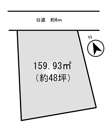 区画図:6mの前面道路に面した、ゆとりある48坪の敷地。