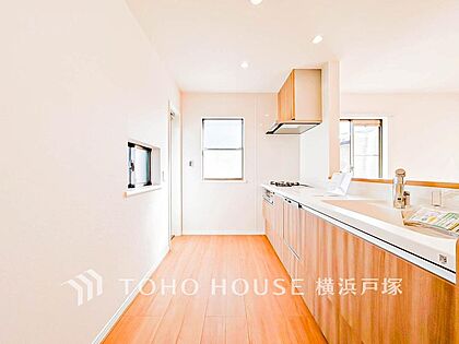 【Kitchen】家事動線やリビングとのつながりに配慮し、食事の準備や片付けなどの家事を楽しくするキッチンスペースに仕上げました。毎日使う場所だから気持よく使えて、居心地の良い空間に。