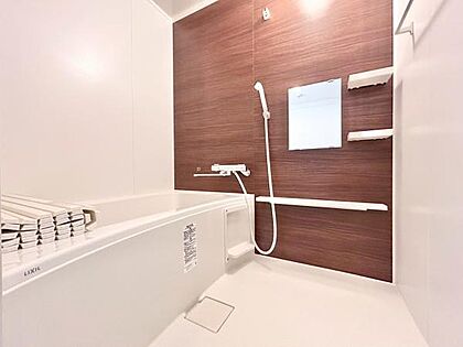 アクセントパネルで落ち着きのある雰囲気を演出♪毎日の疲れを癒やすバスタイムを。