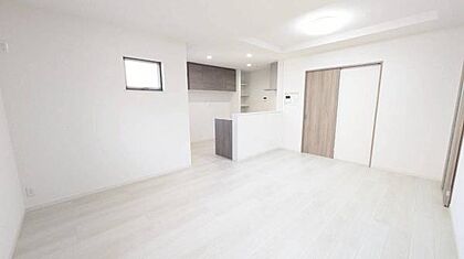 【キッチン】家事をしながらリビングの様子も確認できるので育児中の方も安心して料理ができます。