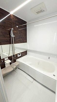 【浴室】足を伸ばしてゆったりくつろげる広さのあるバスルーム。