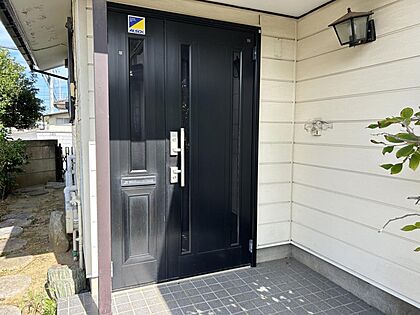 【リフォーム予定】玄関の様子です。親子ドアなので大きな荷物の出し入れに便利です。鍵・照明交換します。