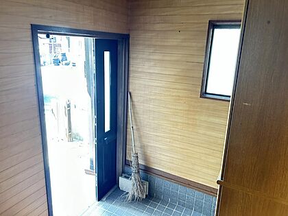 【リフォーム予定】玄関ドアはガラス入りなので明るい光が十分取り込めます。シューズボックス新品交換、クロス張替、照明・カギ交換します。