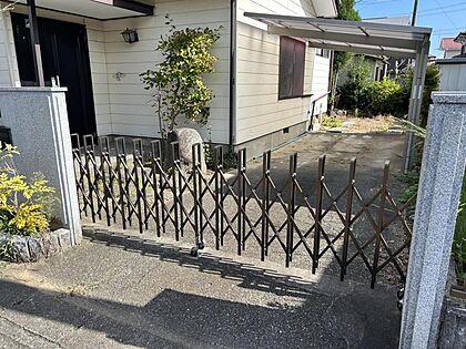 【リフォーム予定】駐車場の様子です。カーポート撤去、奥の草木撤去し3台止められる様にします。