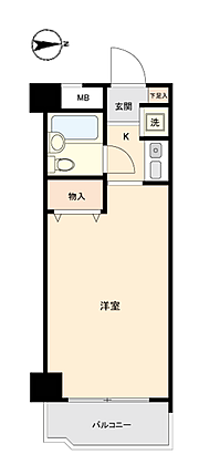 | 間取り | 1K | 専有面積 | 19.25m2(壁芯) |