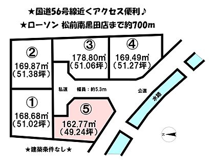 松前町北黒田にあります、5区画分譲地の1区画です♪約51坪ございます♪