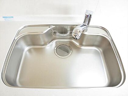 【同仕様写真】キッチンのシンクはサビにくく熱に強いステンレス製です。キッチンの水栓金具はノズルが伸びてシンクのお手入れもラクラクです。水栓本体には浄水機能が内蔵されていて、おいしいお水をつくります。