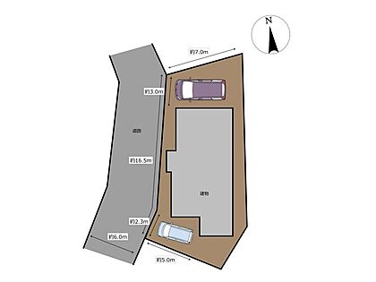 【区画図】区画図です。青空駐車スペースに普通車1台、軽自動車1台駐車可能です。車庫は解体いたします。
