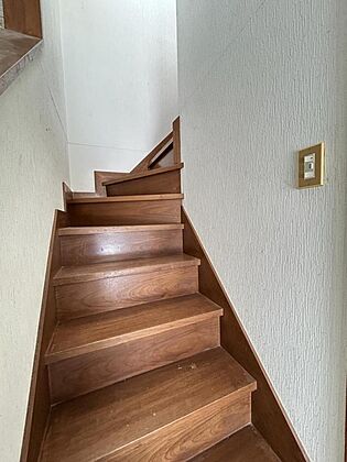 【リフォーム中】階段の写真です。滑り止めと手すりを設置するので、お子様やお年寄りの方でも安心ですね。