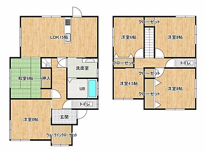 【間取り図】6SLDKの間取りです。1階に2部屋あり、和室もございます。