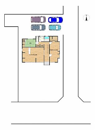 【区画図】北側の車庫を解体し駐車スペースを拡張いたします。