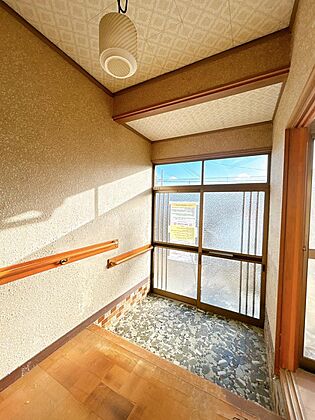 【リフォーム中】玄関ドアは新品交換いたします。ポーチ部分の照明を新品交換するので、お客様を迎える玄関廻りは、明るくスッキリとした印象に仕上がります。