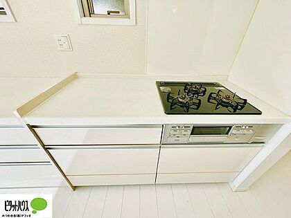 お手入れしやすい3口コンロ。調理の時間短縮ができて、スムーズに料理できます。