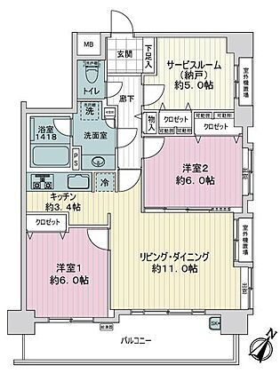 バルコニーには水栓があるので、植栽の水やりや汚れた物を洗うのに便利です